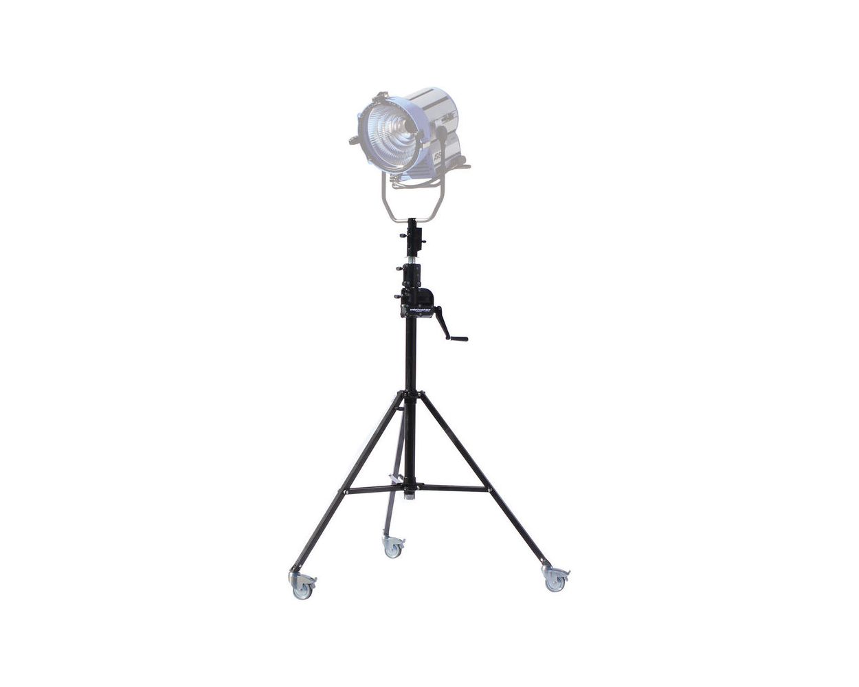 Rolling stand with a max height of 142”, a 58” footprint, and an 80LB load capacity. Spoiler alert: uses a crank to increase height. These stands are a must for large overheads such as a 20x20.
